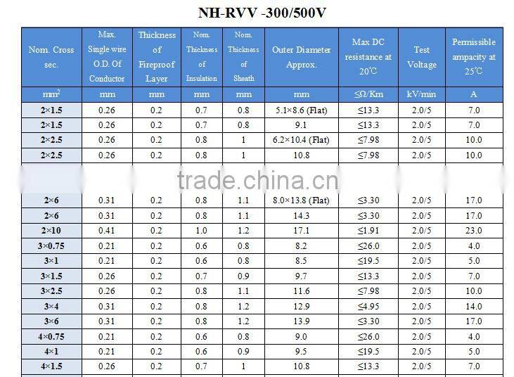 | Model Number | NH-RVV, all kinds | Insulation Material | PVC | |