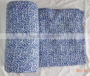 Indigo Blue Hand Block Print Cotton Machine Quilt Ekat Print Cotton Quilt