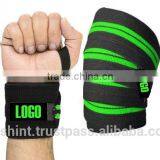 Weight Lifting Knee Wraps Pairs & Body Building Wrist Wraps Pairs, Green And Black Color Wraps Ci-2506-02