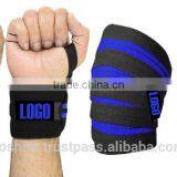 Weight Lifting Knee Wraps Pairs & Body Building Wrist Wraps Pairs, Blue And Black Color Wraps Ci-2506-02