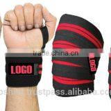 Weight Lifting Knee Wraps Pairs & Body Building Wrist Wraps Pairs, Red And Black Color Wraps Ci-2506-02