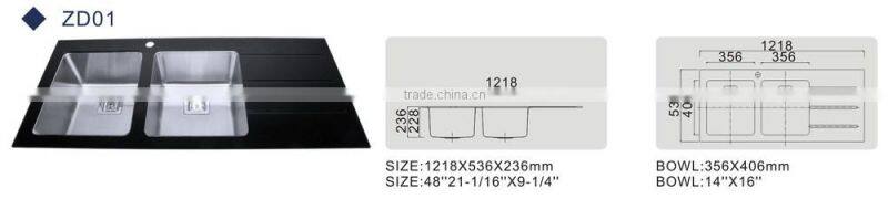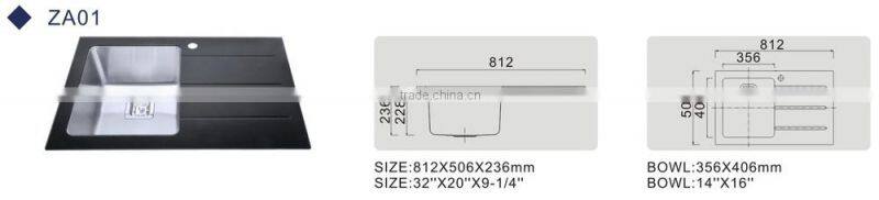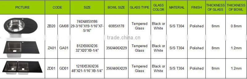 | Product Name | New OEM Tempered Glass, Toughen Glass Round Single Bowl 50/50 Kitchen Sinks with drainboard, 304 Stainless Steel |