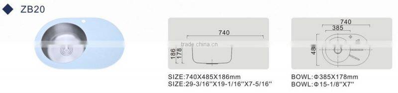 SUS304 Stainless Steel Round Corner Kitchen Sink