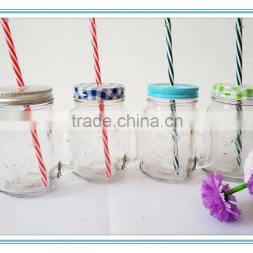 2016 Hot Sale 400ml Glass Mason Jar With Metal Lid and Straw