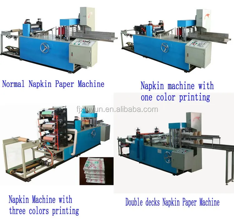 Full Automatic Paper Napkin Machine is used to fold the jumbo roll into the Square or Rectangular paper napkin. The machine system includes Printing, Embossing, Folding,Counting and Cutting. The speed of the automatic paper napkin folder is controlled by the frequency drive. The counting could be varied according to the requirement.