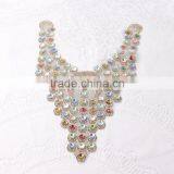 Yiwu Factory Hotsale Rhinestone Crystal Collar Applique Trim Neckline Motif Adhesive for Cloth