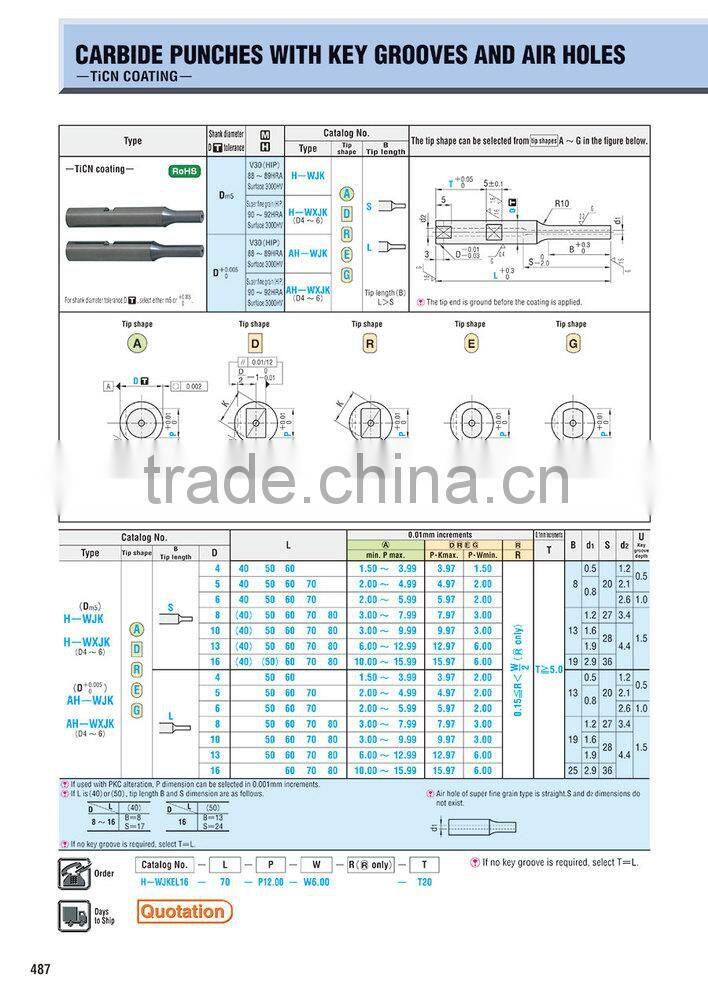 Long Life Hardened High Precision Tungsten Carbide Punches With Key Grooves, Air Holes TiCN Coating