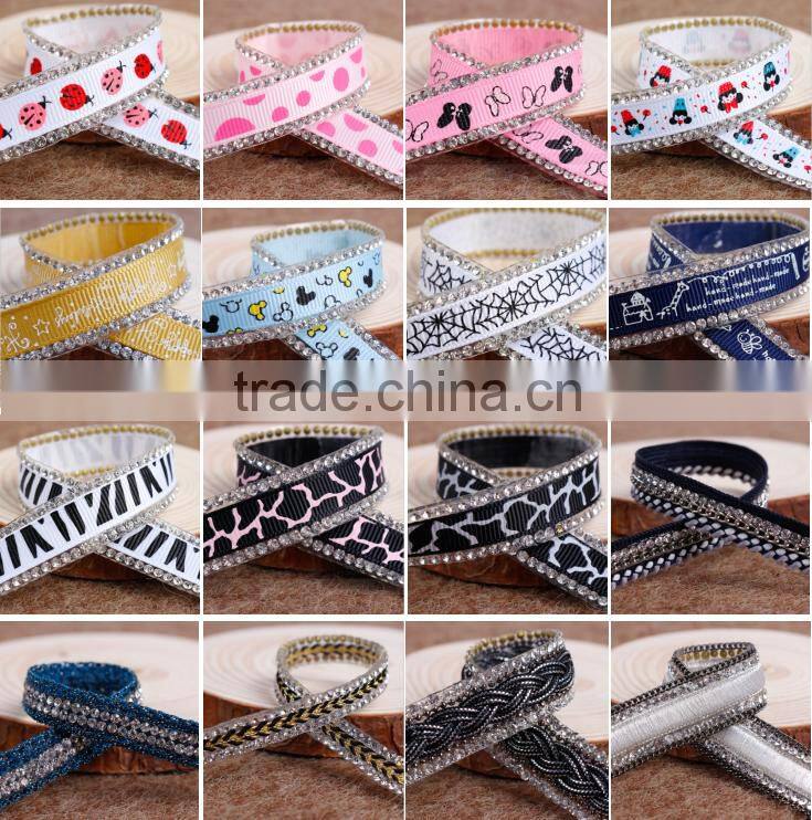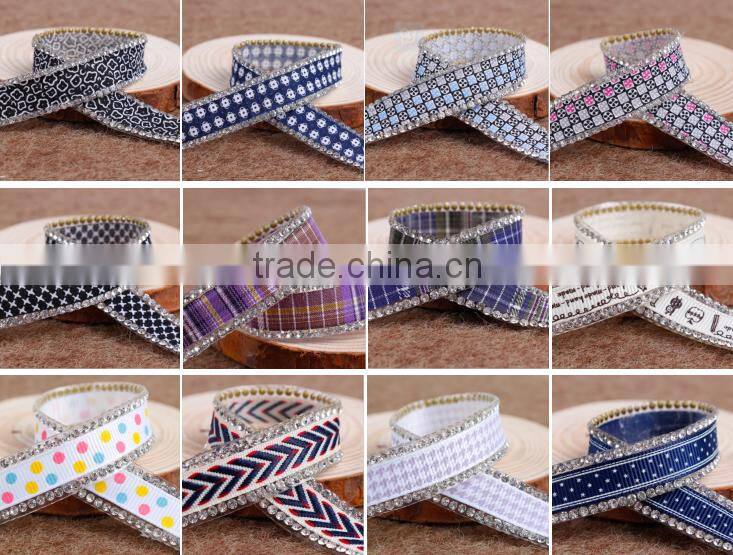 Iron On Rhinestone Patterns Chain,Printing Beautiful Parttern Ribbon Base On Glue For Garment Accessory