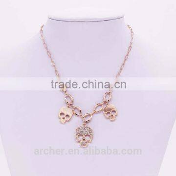 Gold Plated Crystal Long Skull Necklaces Pendants Wholesales Fashion Jewelry for Women and Men GJ-105