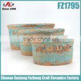 Oval Shaped Antique Blue Flower Pot for Garden Decoration