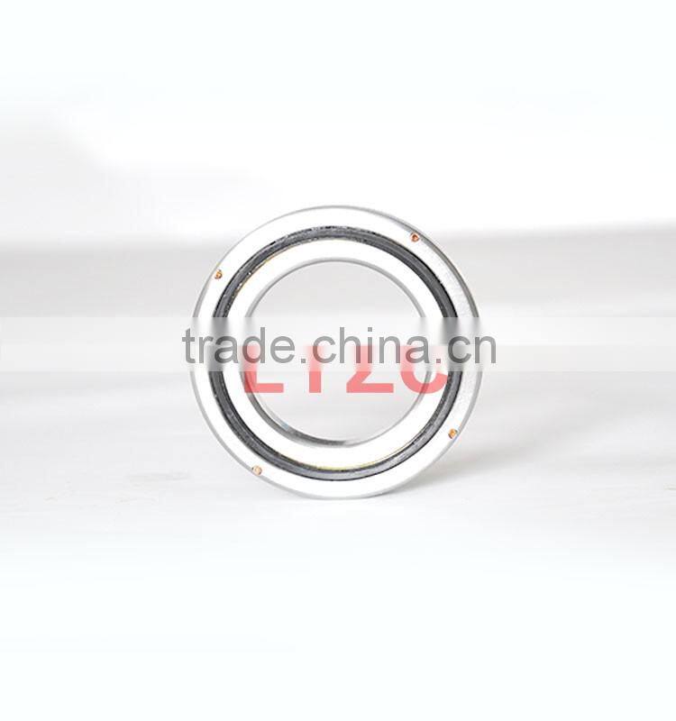 This kind bearing is mainly consisted of an outer ring, an inner ring, a plurality of rollers and a plurality of spacers. The roller lies between the inner ring and the outer ring. The spacer is placed between rollers to prevent the mutual friction between rollers so as to decrease the torque resistance for rotation. In addition, the surface of the roller and the rolling track is linear contact. So, when the bearing is loaded, the loading area will be very large. Thus, the elastic deformation will be less, and the bearing will achieve a long service life. Each roller in Crossed Roller Bearing is crossed at 90° angle, which is able to bear the loading force from axial, radial and the other direction at the same time.