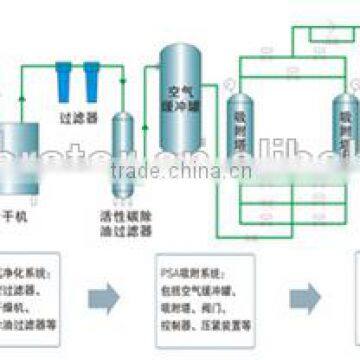PSA N2 generator uses carbon molecule as sorbent, absorbs and desorbs O2 from ambient by the principle of