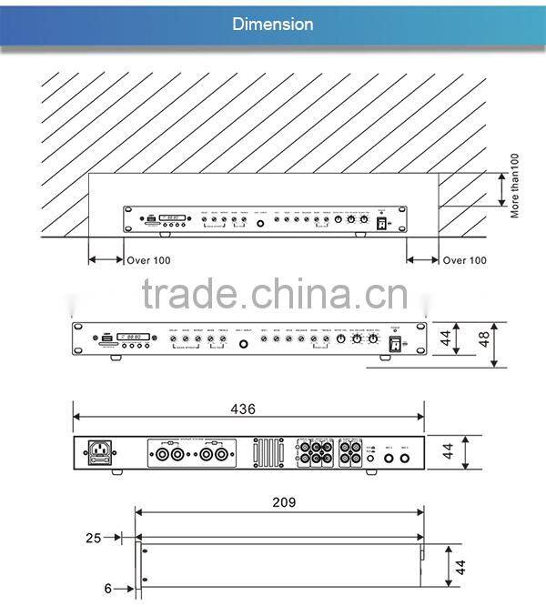 9) The case is in 1U; Using the switching power and the chips combination of class D amplifiers; higher efficiency and lighter