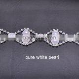 (M0979) 138mmx21mm,16mm Bar, Rhinestone Connector for Hair Jewelry,silver Plating,all Crystals and Pure White Pearl
