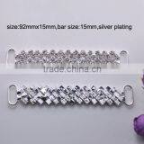 (M0902) 92mmx15mm,15mm Bar, Rhinestone Connector for Hair Jewelry,silver Plating