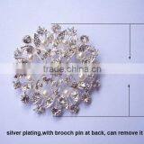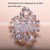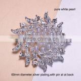 (M0651) 60mm Rhinestone Metal Brooch With Pin at Back,can Remove It,silver Plating,pure White Pearl