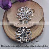 (M0305-14mm Inner Bar) 25mm Diameter,metal Rhinestone Buckle ,silver Plating,round Flower Shape