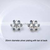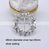 (M0354-15mm Inner Bar) 36mm Diameter,metal Rhinestone Buckle ,silver Plating, Flower Shape