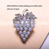 (M0646) 38mmX54 Rhinestone Metal Brooch With Pin, Nickle Plating,pure White Pearl
