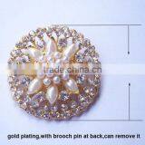 (M0647) 51mm Rhinestone Metal Brooch With Pin at Back,gold Plating, Ivory Pearl
