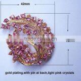 (M0649)42mmx52mm Rhinestone Metal Brooch With Pin at Back ,light Rose Gold Plating