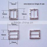 (M0415) 15mm Inner Bar Rhinestone Buckle for Wedding,outer Size:21mmx9mm,silver or Light Rose Gold Plating