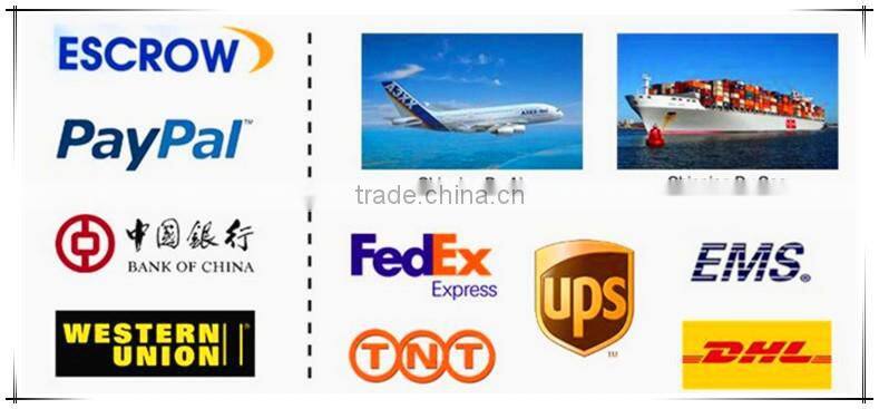 4) Shipping method: sample by DHL/TNT/Fedex. Order by sea/air.