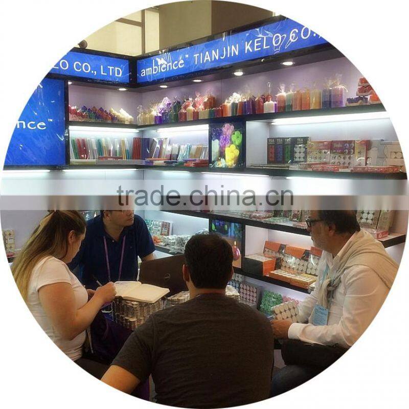 Tianjin Kelo Co., Ltd. (Kelo) is a candle factory established in 2006, mainly focus on the export of candles and candle related products. Although we supply most types of candles in basic retail packaging, our strengths lie in our ability to provide the latest ideas of decorative gift packaging for candles, candle holders, essences and scents. Our value added packaging provides both distributors and retailers with better margins and faster sell throughly.