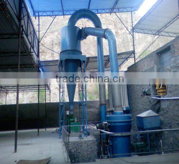 Firstly, raw material is crushed by jaw crusher to the size required, then elevated into a hopper from which the material is transported through the electro-magnetic vibrating feeder evenly and continuously into the grinding chamber for powder-processing. The rollers oscillate outward to press the ring because of the centrifugal force and the shovel scoops up the materials, send to the middle between the ring and rollers to accomplish the grinding.After grinding, the rough materials will be recycled by the air from the fan back into the grinding chamber for regrinding and the fine powders are blew into the cyclone and poured out through the output-powder pipe as the final products.