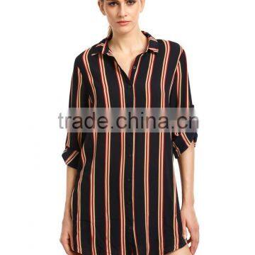 seller factory 2016 fall stripe button down long dress shirt design for women | |