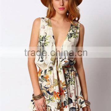 This 2016 latest summer rural style low neckline floral short romper womens playsuit price depends on the final quality ,quantity and design |