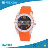 Fashion Design Orange Color Silicone Band Black Dial Watch Women Lady