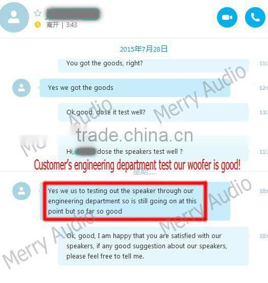 For future development, Merry Audio will continue to make progress in products and quality control, provide low frequency drivers that range from 6.5" to 21", as well as various line of high frequency drivers. We base on the “quality first, reasonable price” and develop the spirit "adopting the essence of all other company,strive for perfection", keep innovating to provide our customers speakers with more advance technology and better quality than other company.