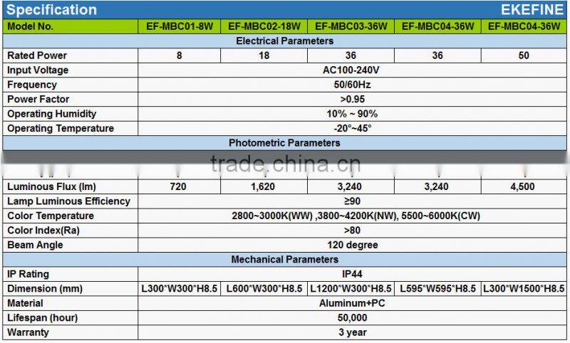 50W 300 x 1500mm LED Panel Light Advantages: