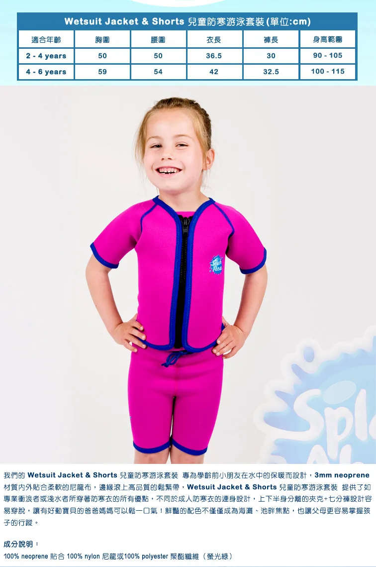 High Quality Swimwear Vendor Unique 1mm Colored NEOPRENE UPF50+ Taiwan 1-6y Splash About Jacket & Shorts Wetsuit