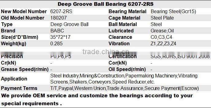 Low Noise Deep Groove Ball Bearing 6207-2RS