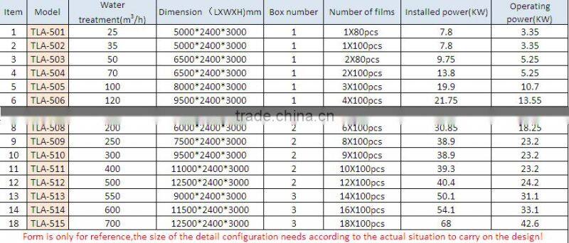 For tubular hollow fiber membrane silk, microporous tube wall, able to intercept live activated sludge, and the vast majority of suspended solids, crystal clear water.For the continuous and stable operation of membrane in the long-term, in the bottom of the film to be a certain amount of aeration, such, satisfy biological oxygen demand (cod), and the membrane silk continually jitter, prevent activated sludge attached on the surface of membrane pollution.