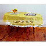 Red Jacquard Vinyl Oval Table Cover With Lace