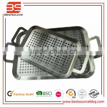 Stainless Steel Pre-seasoned Cast Iron Double Burner BBQ Charcoal Grill Pan