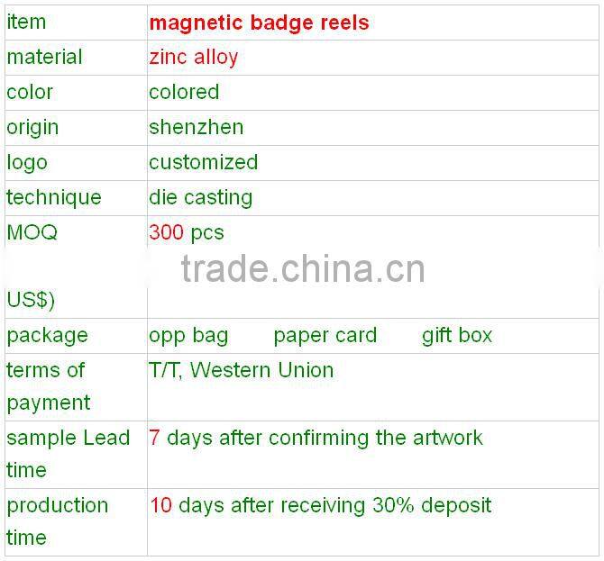 high quality flag zinc alloy magnetic badge reels