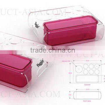 A sleekly designed acrylic bar caddy/ tray perfect to serve vodka, 6 energy drink cans, and a compartment to put ice.