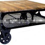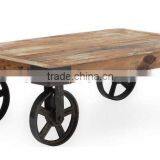 INDIA JOSHI INDUSTRIAL COFFEE TABLE MADE IN JODHPUR , WOODEN COFFEE TABLE WITH WHEELS
