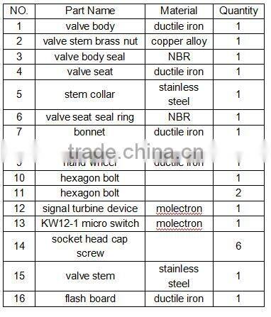 Fire signal valve is a special valve to close the flow of fire water supply system and monitor its electric signal of closure state. It is mainly used for closure and closure state control on the main pipe of an automatic water spraying system. Besides, it can also be used for flow closure and closure state control of a fixed fire extinguishing system.