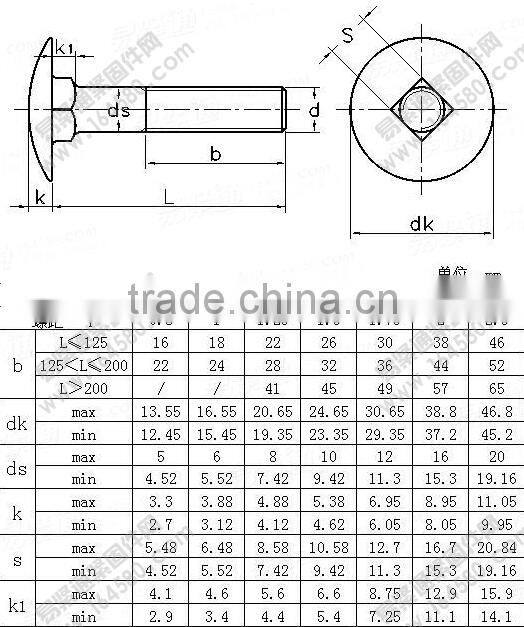 Round Head Square Neck Carriage Bolts DIN603 Carbon Steel M6*16