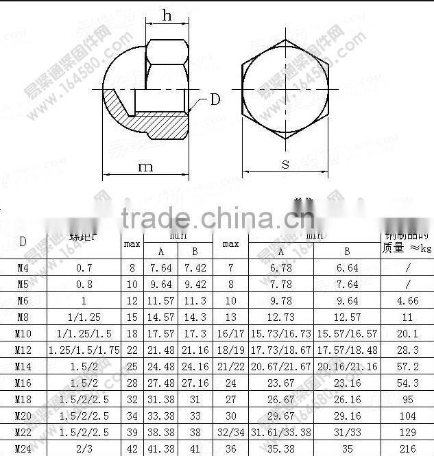Blind Hexagon Cap Nuts DIN1587 Carbon Steel Dacromet