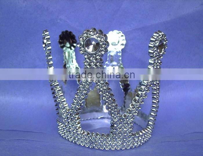 2016 fashion metallic silver plastic tiara round king tiaras and crowns.