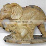 Mother Son Marble Elephant Statue Hand Carving Stone Sculpture For Garden, Hotel, Resort And Restaurant