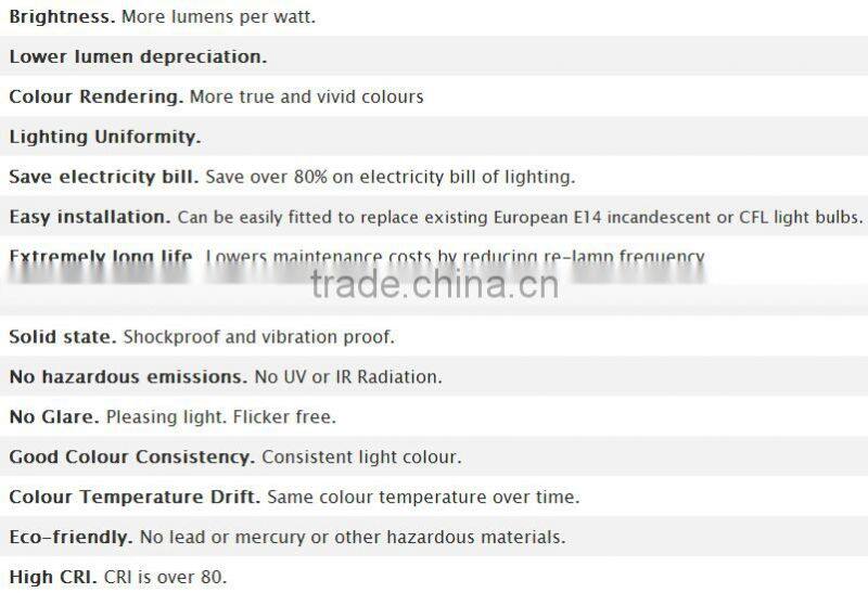 | LED Type | COB (chip-on-board) | Bulb Shape | Candle |