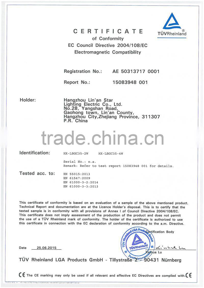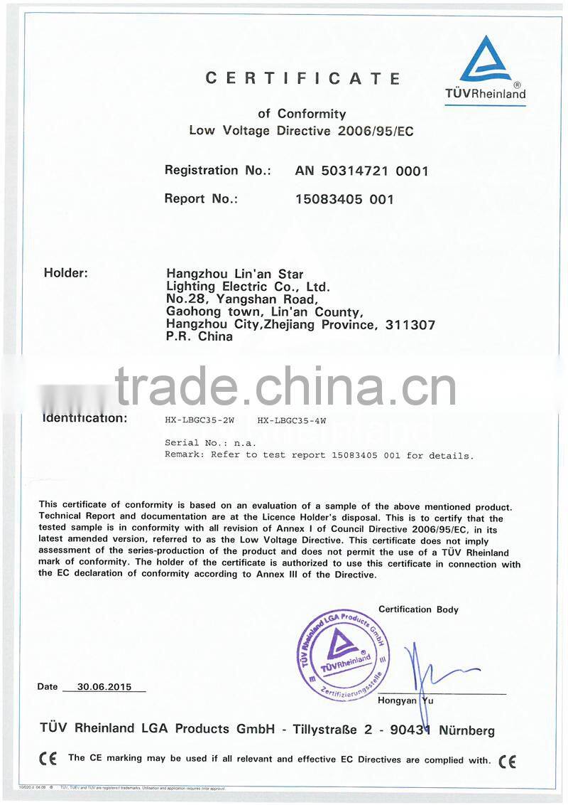 | Model No. | HX-LBGC35-4W | Beam Angle (Degree) | 360 |