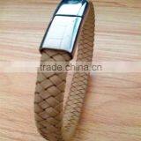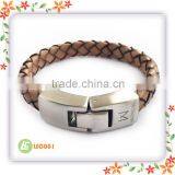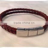2015 Fashion Wide Braided Cow Leather Wristband With Stainless Steel Magnetic Clasp